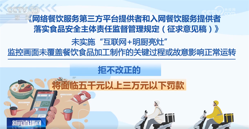 刘鹏称:“我们经常讲的一张证开多个餐饮店,将面对五千元以上三万元以下罚款。针对餐饮外卖新业态成长中呈现的“鬼魂外卖”等监管盲区也制定了相关内容。未实施“互联网+明厨亮灶”、画面未笼盖餐饮食物加工制做的环节过程或居心影响一般运转,平台该当正在网店首页加注“无堂食”标识。平台收到市场监视办理部分关于入网餐饮办事供给者违法违规行为消息等传递未采纳响应办法的。