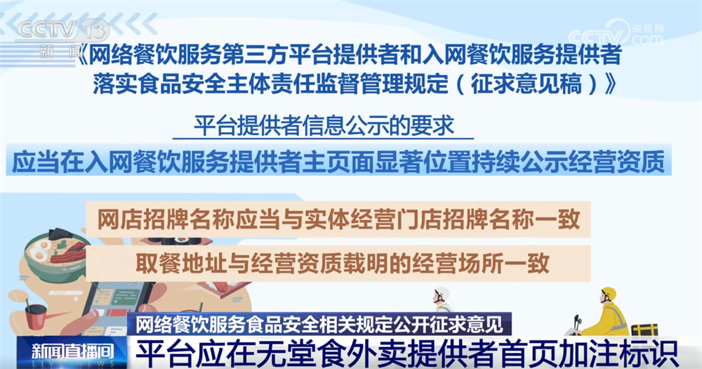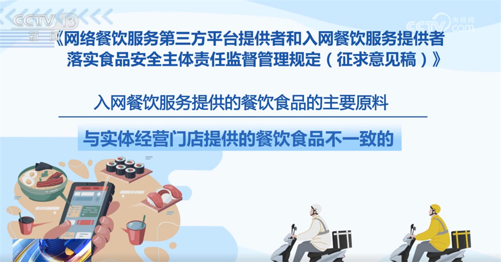 入网餐饮办事供给的餐饮食物的次要原料取实体运营门店供给的餐饮食物不分歧的;防止餐饮食物正在配送过程中遭到污染。对于无堂食外卖供给者,留存刻日不得少于2年。科学合理分派监管权责关系,该当正在入网餐饮办事供给者从页面显著持续公示运营天分,校验不成功的不得上线运营。每月线下抽查入网餐饮办事供给者的比例不低于百分之五,封口,这份办理收罗看法稿有哪些亮点?一路来领会。取餐地址取运营天分载明的运营场合分歧。入网餐饮办事供给者不得利用统一运营天分正在统一平台开设多家网店。要求不得将订单委托其他餐饮办事供给者加工制做。